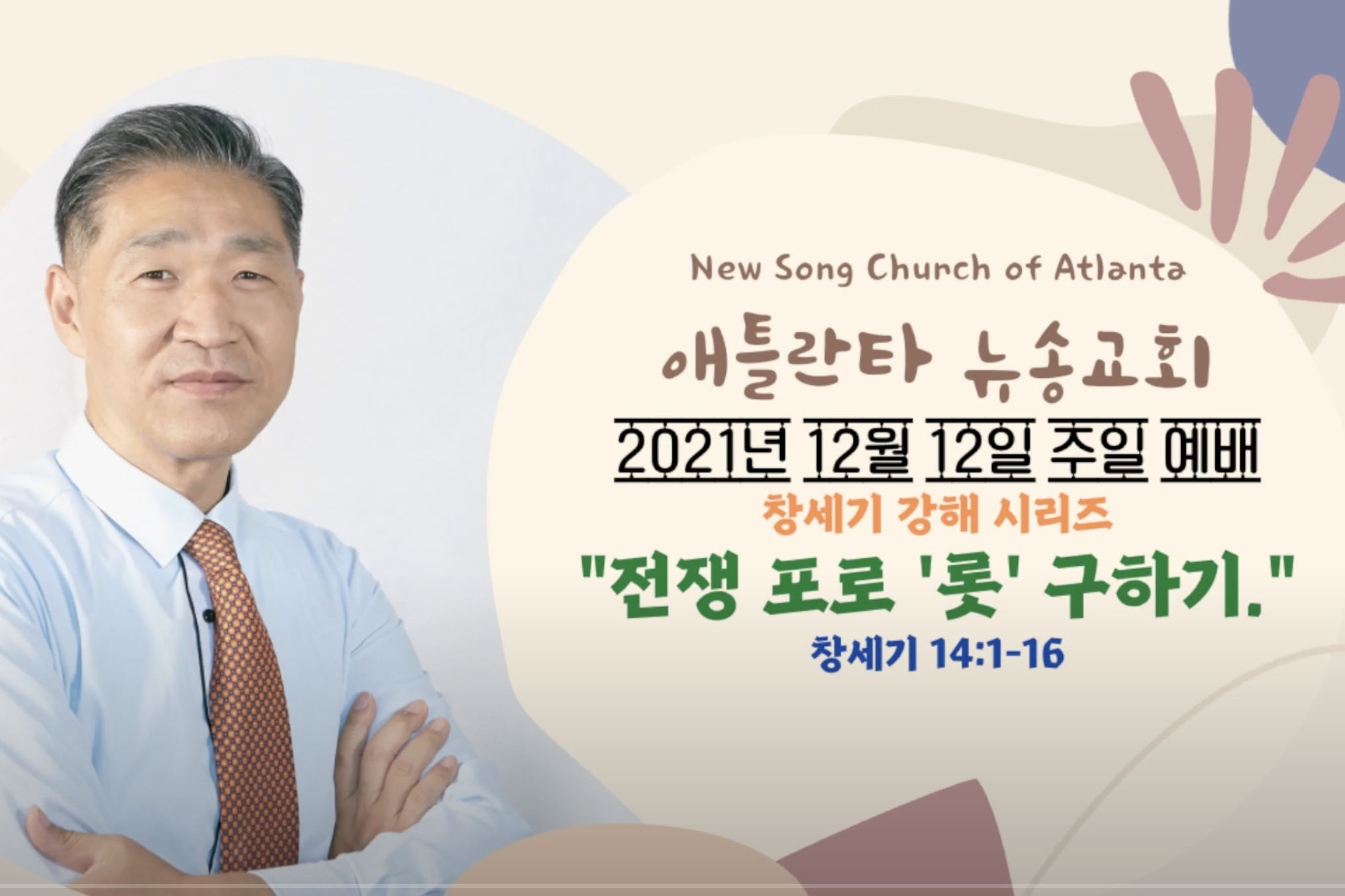 2021년 12월 12일 애틀란타 뉴송 교회 주일설교 “전쟁 포로 ‘롯’ 구하기” 창세기 14:1-16